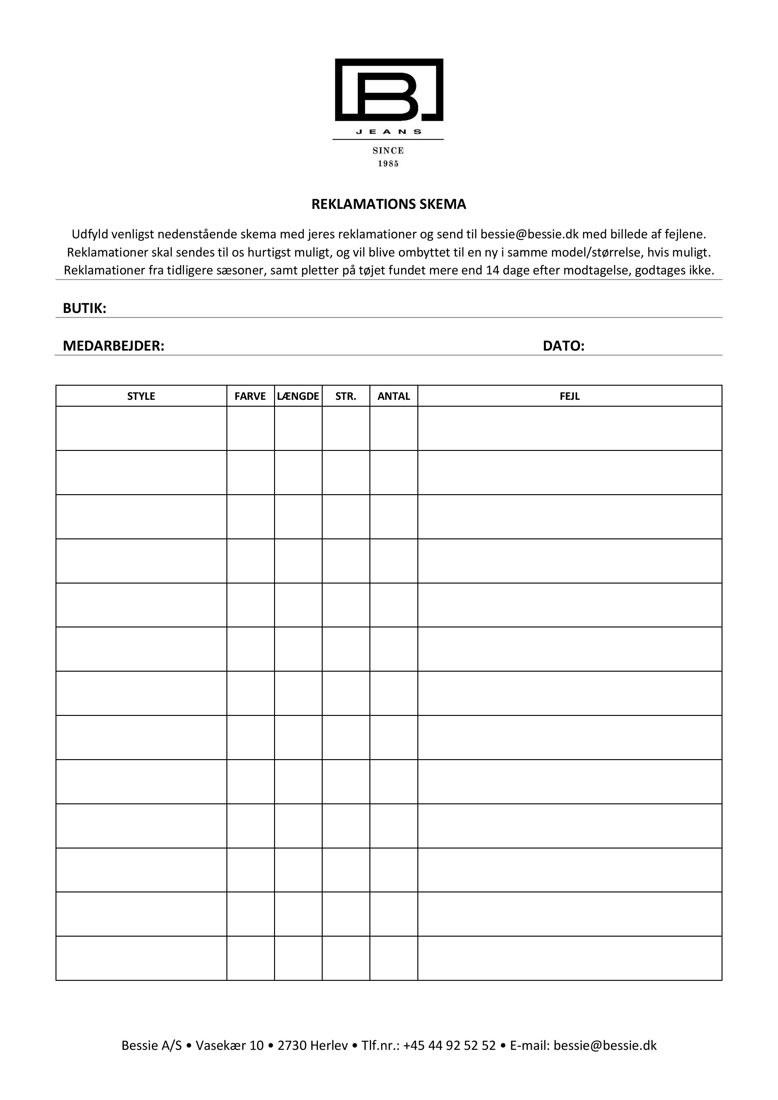 If you wish to have the complaint form sent as a Word document so that you can fill it in on the computer, please send us an email at bessie@bessie.dk or call us on tel. +45 44 92 52 52